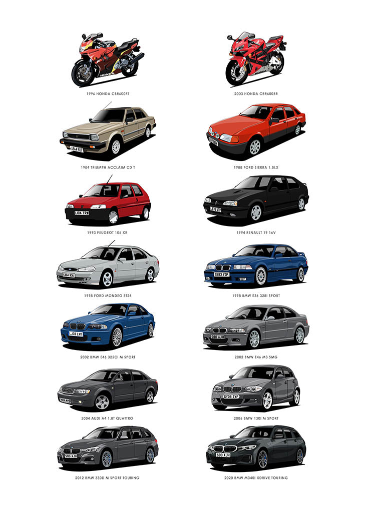 We'll email you to request your photos or find them for you. Want us to draw more cars or bikes? Send us an email for a quote!