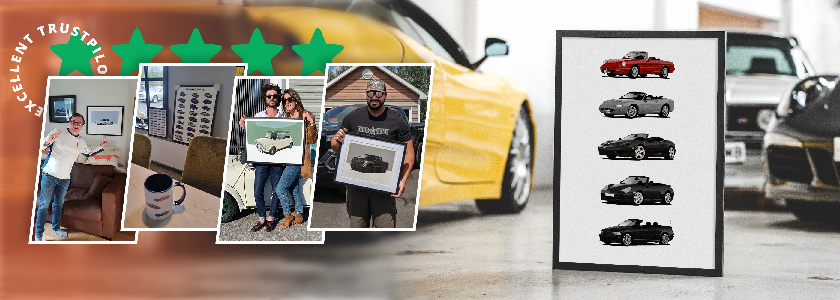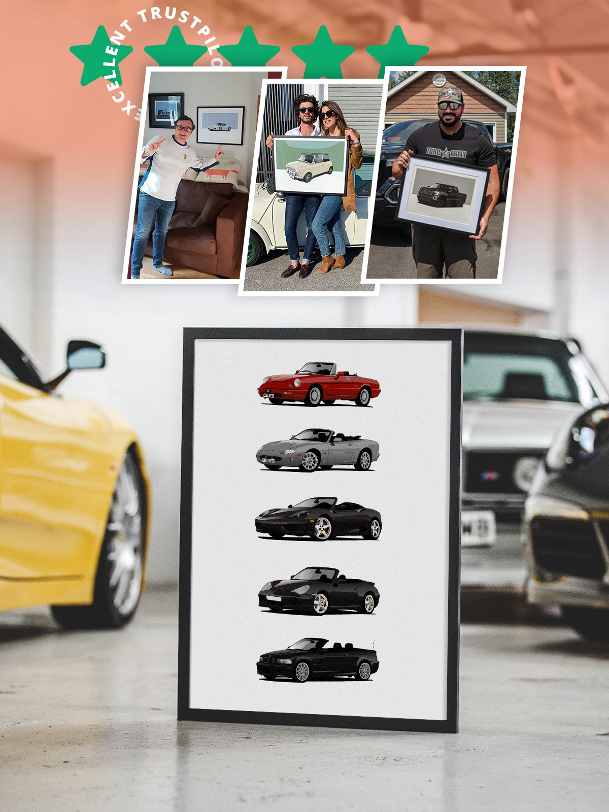 Rest assured we will make sure we capture your pride and joy be it a modification, spoiler or special number plate. If you have any requests or areas we should focus on let us know, we will work with you to get it right. If you want the cars drawn in a different style or a different angle let us know before we start drawing your ride.